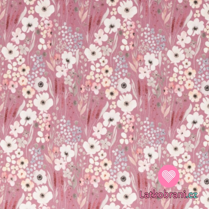 Rebrovaný úplet kvetinová lúka na staroružovej