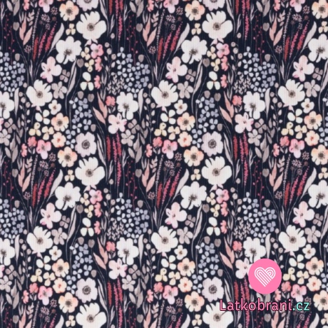 Rebrovaný úplet kvetinová lúka na tmavo modrej