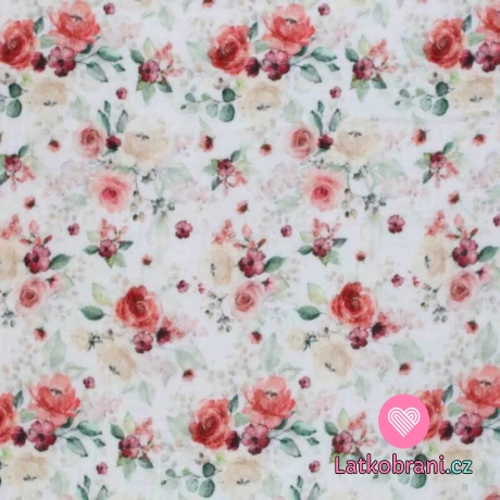 Dvojitá gázovina / mušelín ruže na svetlom podklade