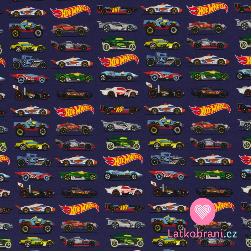 Úplet potlač autíčka Hot Wheels v rade na modrej
