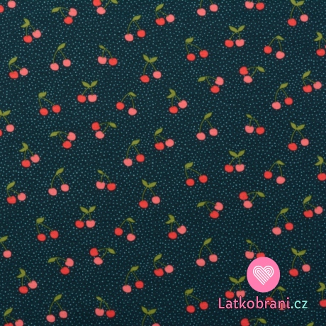 Čerešňový úplet s polka bodkami na námorníckej modrej, BIO