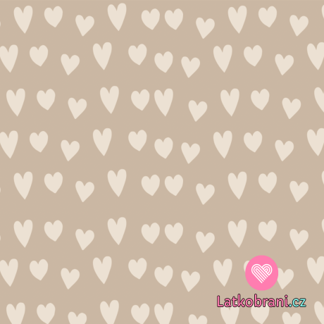 Rebrovaný úplet potlač srdiečka na kapučínové, BIO
