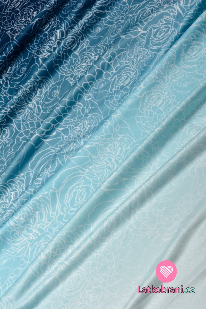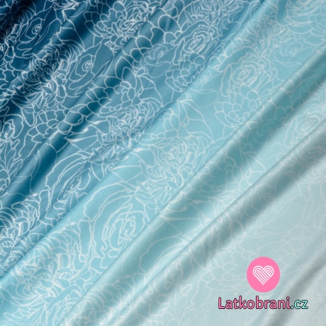 Funkčný úplet "mliečny hodváb" panel bordúra kvety, prechod bielo - modrý