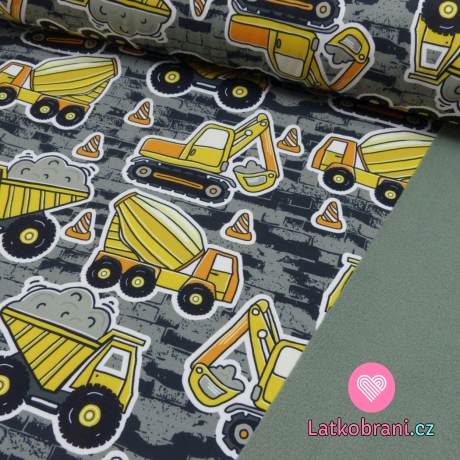 Softshell stavebné vozidlá na šedej s fleecom