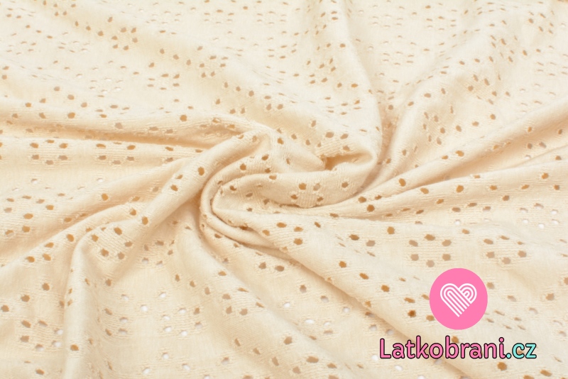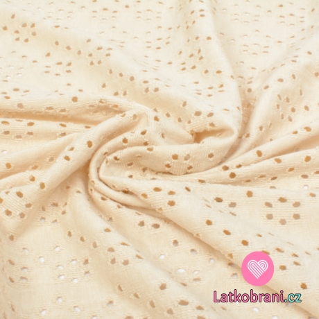 Pletenina s perforovanou výšivkou monochromatická béžová