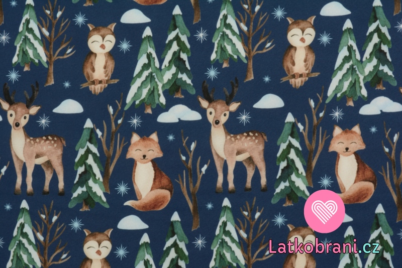 Softshell lesné zvieratá na indigovej modrej s rúnom
