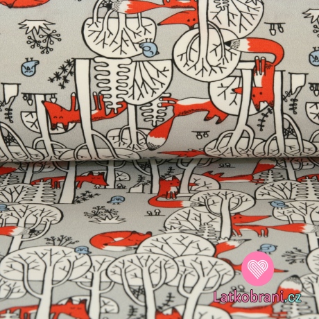 Teplákovina líšky v lese na šedej