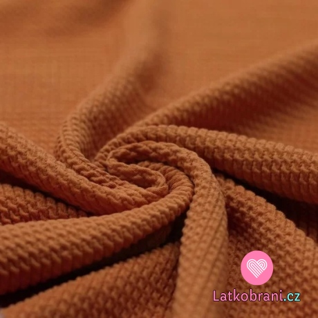 Jednofarebný úplet s 3D štruktúrou "mini vrkôčiky" koňakový