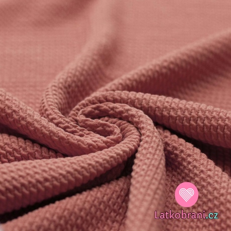 Jednofarebný úplet s 3D štruktúrou "mini vrkôčiky" staroružový tmavší