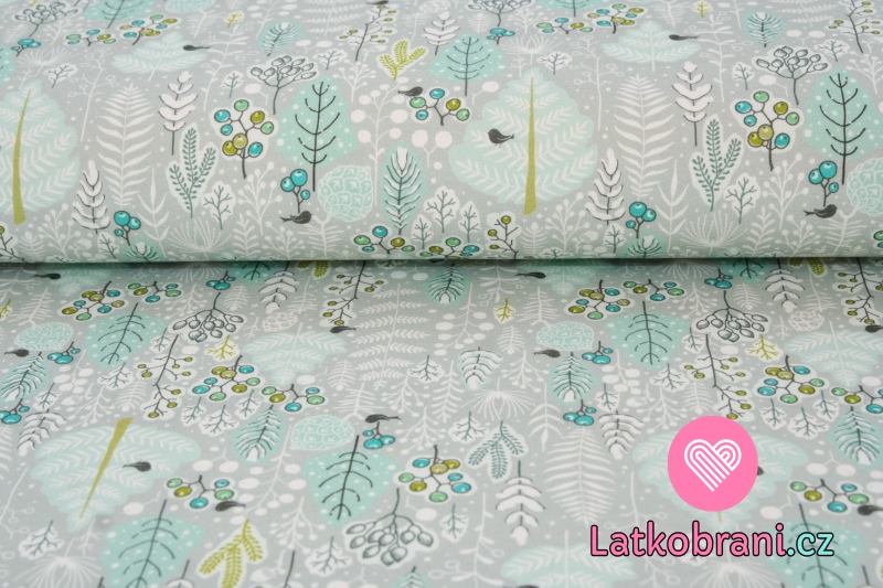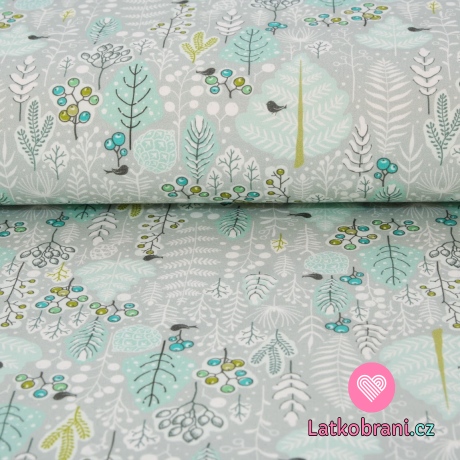 Teplákovina zimné vetvičky na jemné šedo-modrom podklade