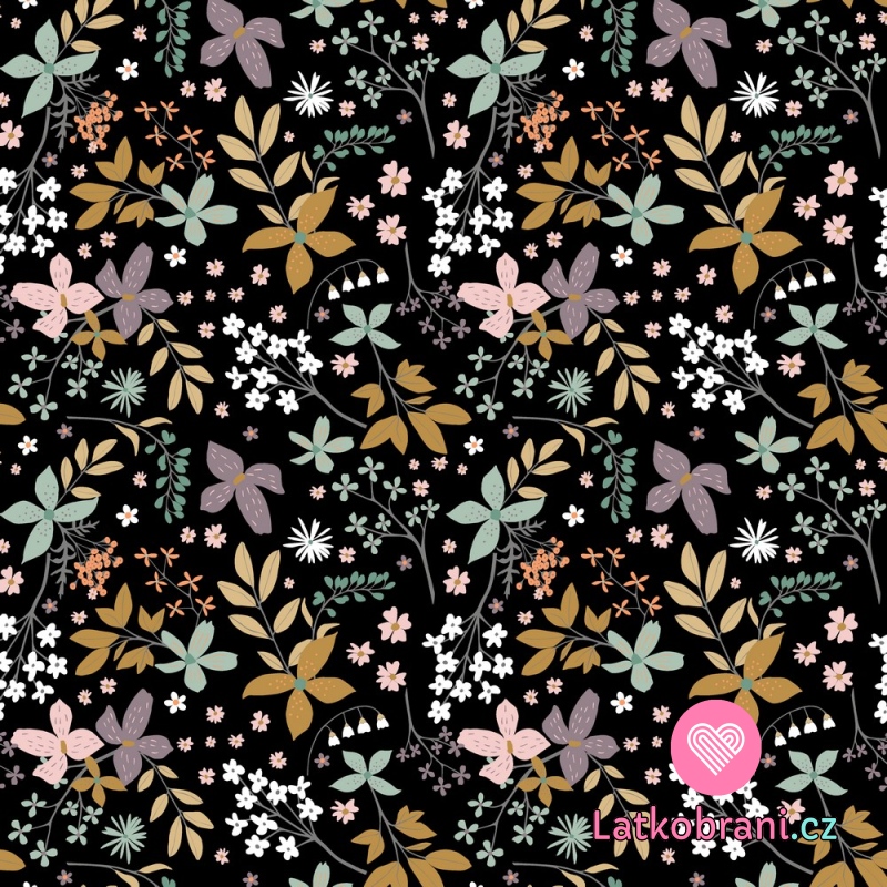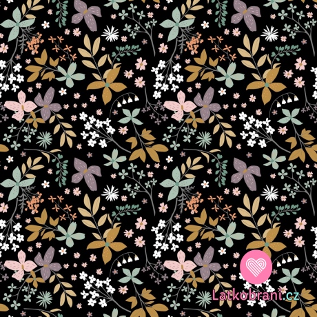 Tepláky kvety na čiernej farbe