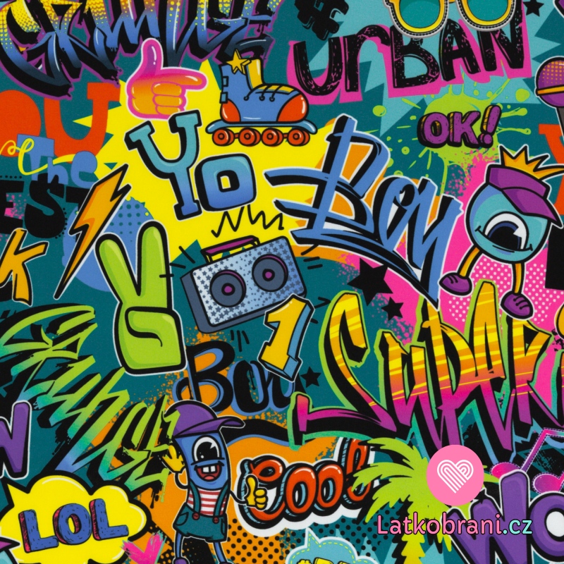 Softshellová potlač farebných graffiti na smaragde