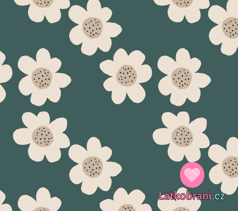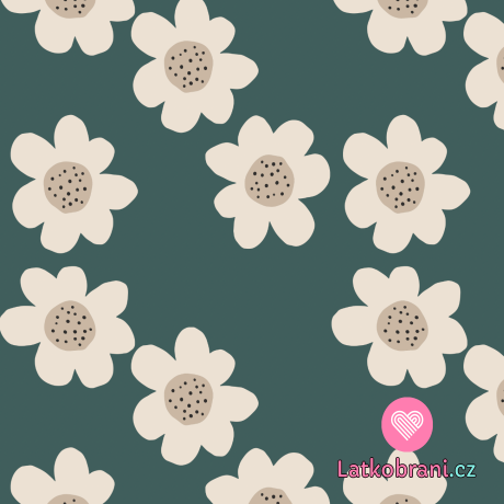 Rebrovaná pletenina s potlačou bielych kvetov na smaragdovo zelenú, BIO