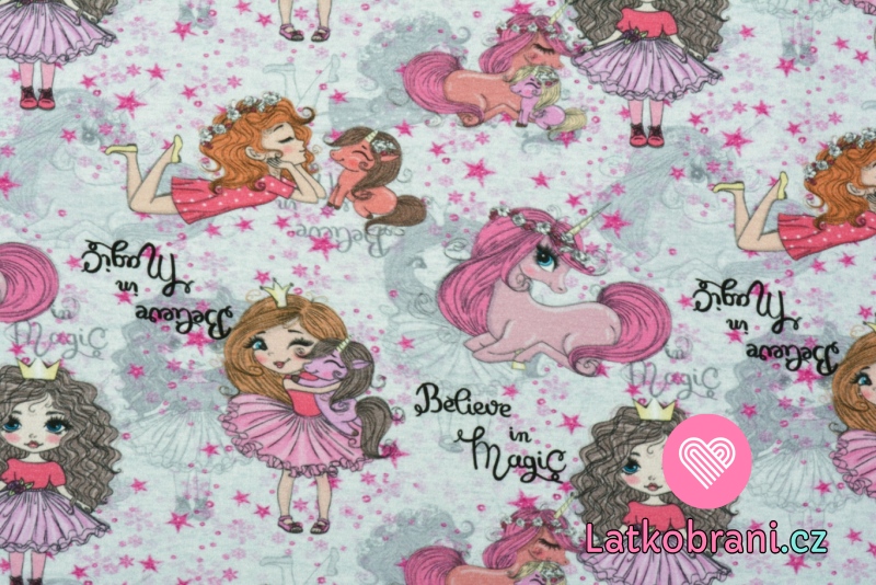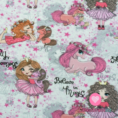 Teplákovina potlač princeznej s jednorožcami na šedej