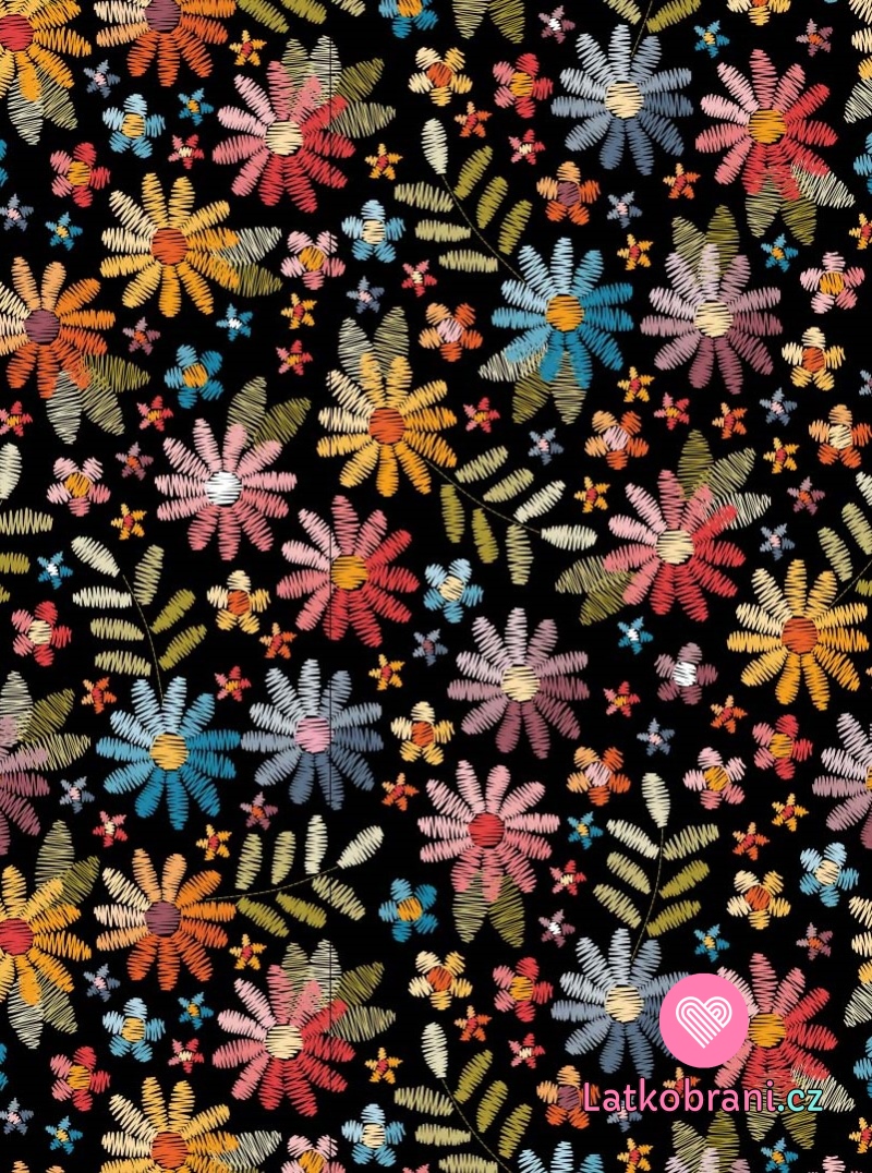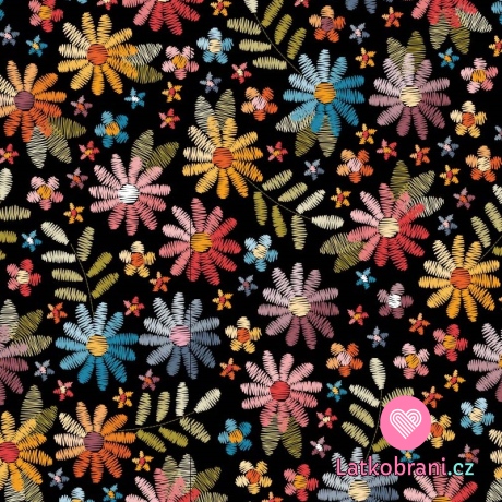 Úplet potlač kvety na čiernej