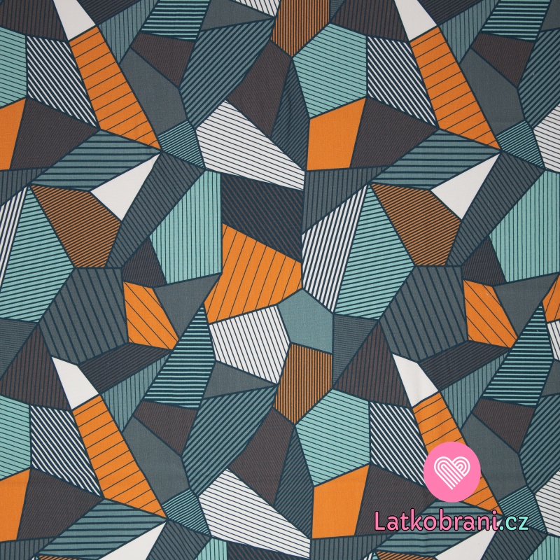 Modalová teplákovina potlač gemetrické tvary do petrolejovej