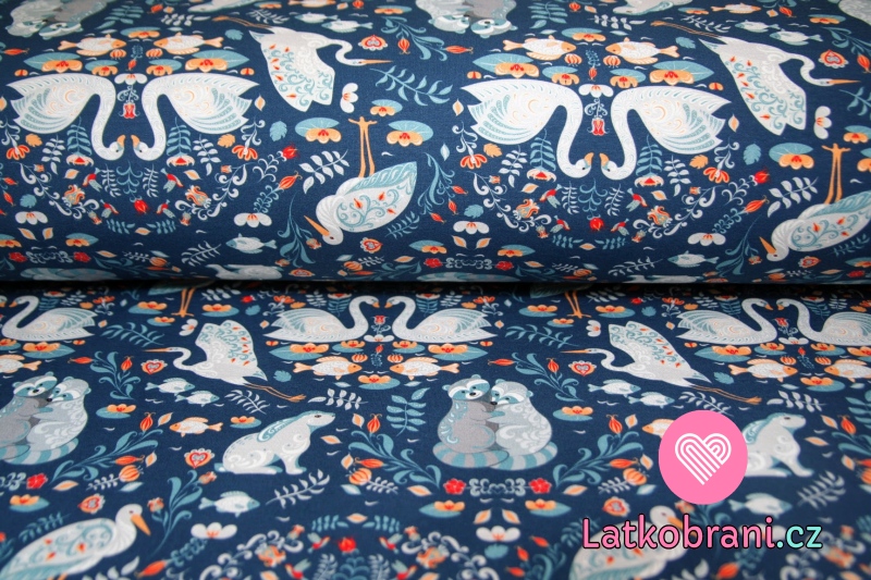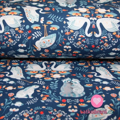Teplákovina mýval v objatí s bocianom na tmavo modré