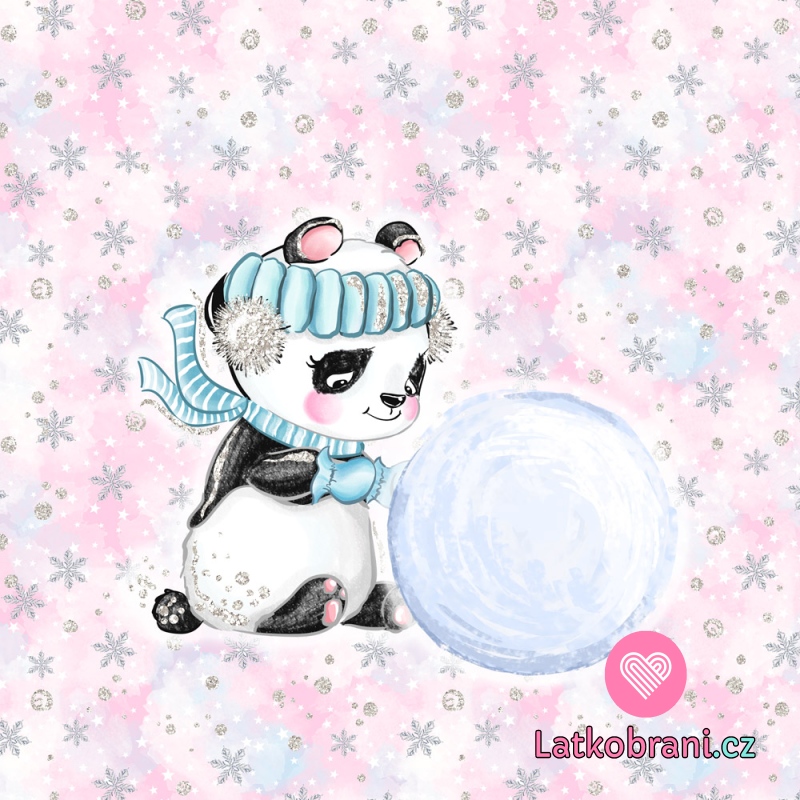 Panel panda sa snehovou guľou na ružové