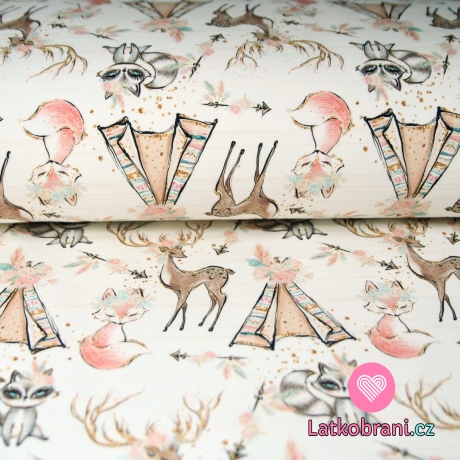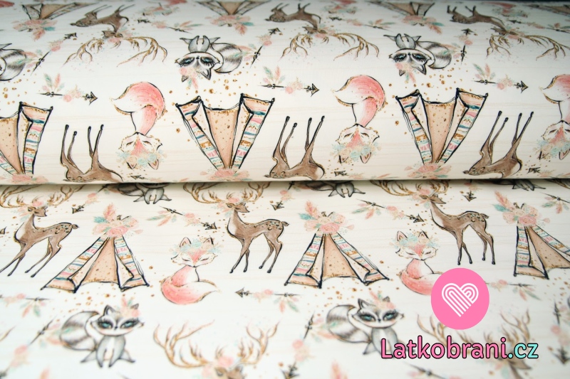 Teplákovina líška, mýval u típí na smotanové