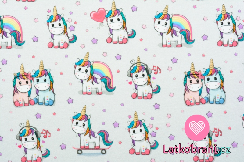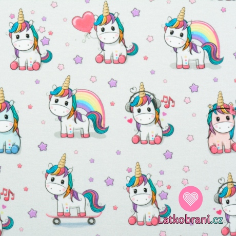 Teplákovina jednorožec s dúhovou hrivou na šedej