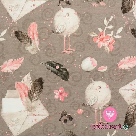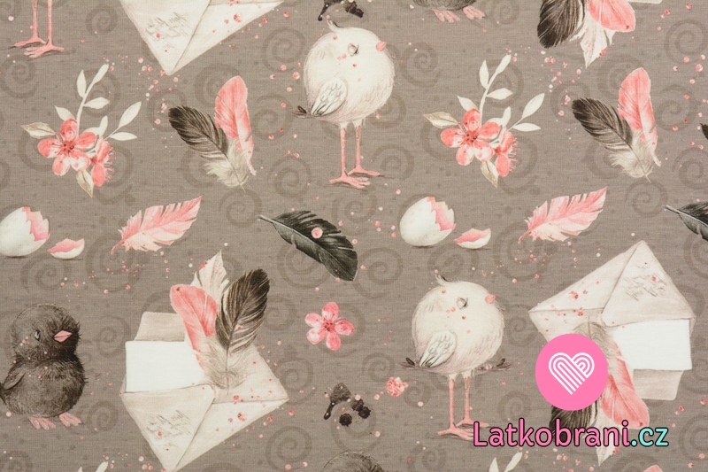 Úplet obálka s pierkami, vtáčik na šedé