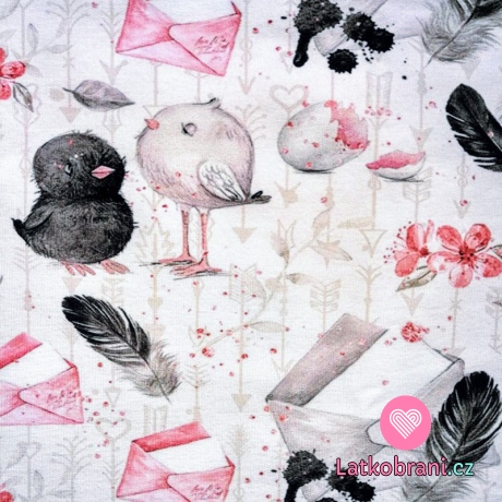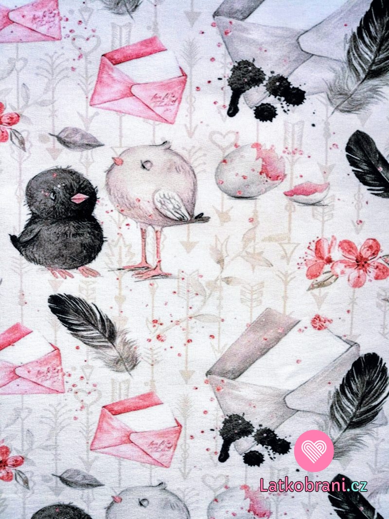 Teplákovina potlač zamilovaní vtáčiky s listové obálkou