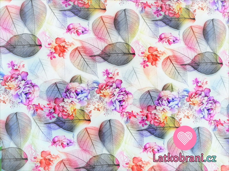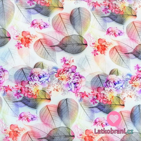 Teplákovina koláž s listami a kvetmi do fialovej