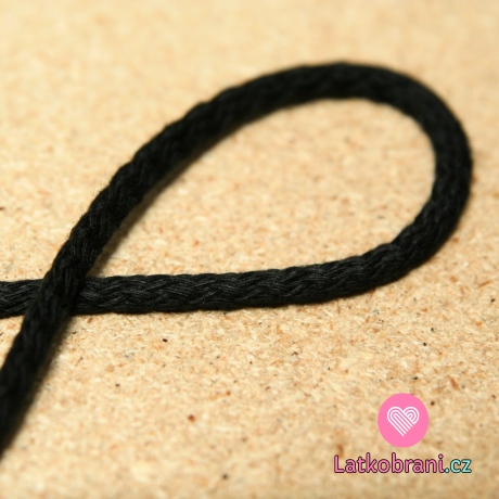 Šnúra guľatá odevné bavlna 4 mm čierna