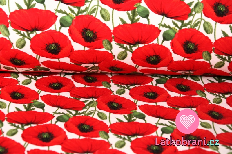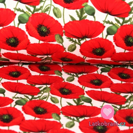 Úplet makovice, červený mak na biele