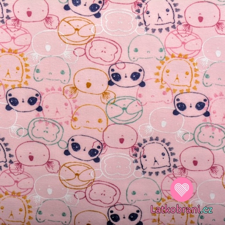 Úplet potlač hlavičky zvieratiek na baby ružové