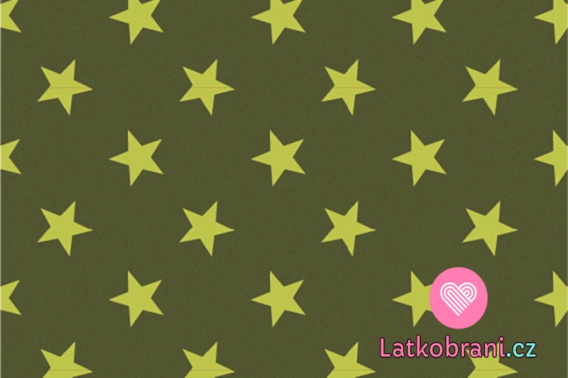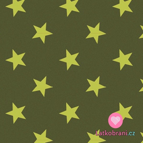 Teplákovina potlač neónovo zelenej hviezdičky na khaki zelenej