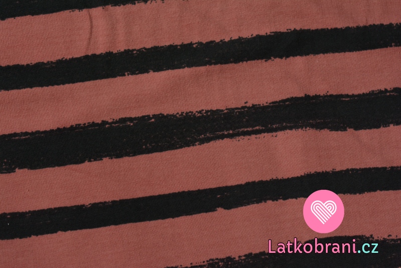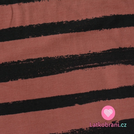 Teplákovina potlač čiary štetcom do pruhu tmavo šedej na zaprášené sýte staroružovej