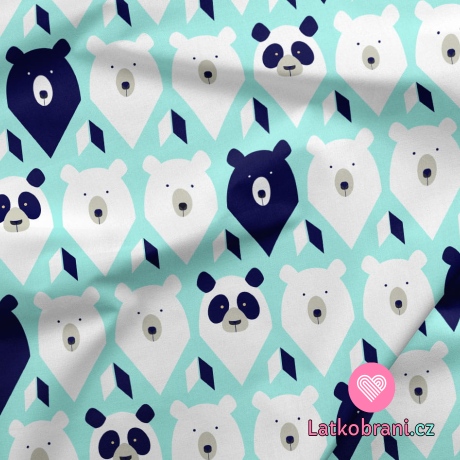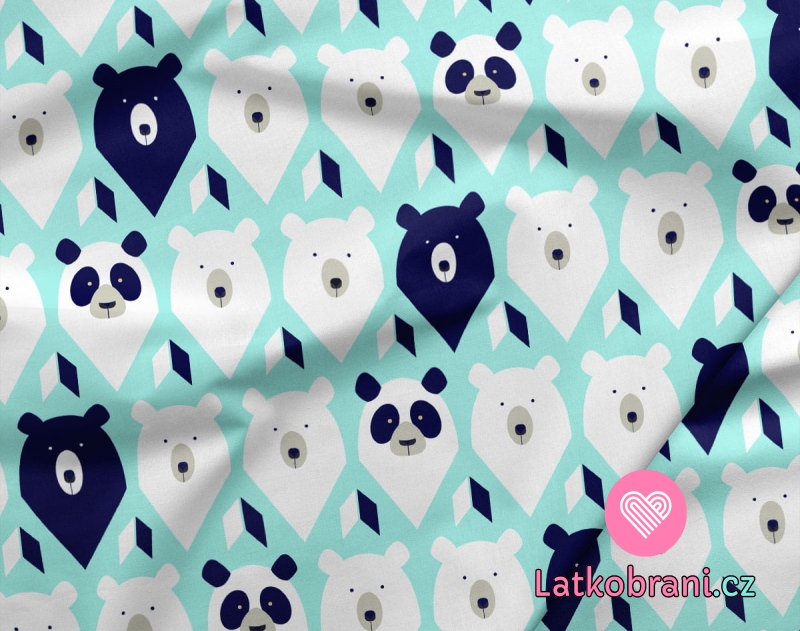 Teplákovina potlač hlavy medvedíkov na zelenkavá-modré