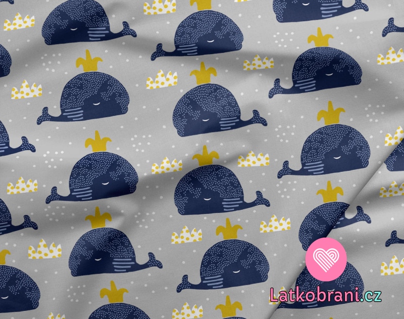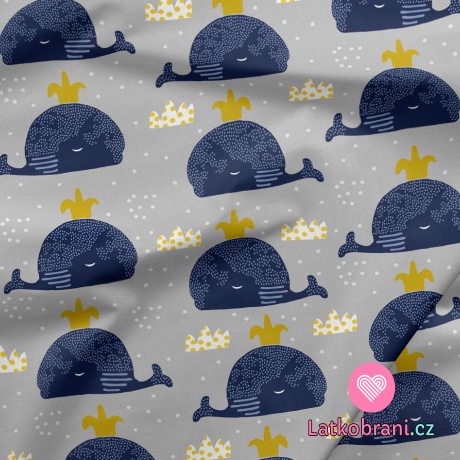 Teplákovina potlač veľryby s vodotryskom na svetlo šedé