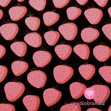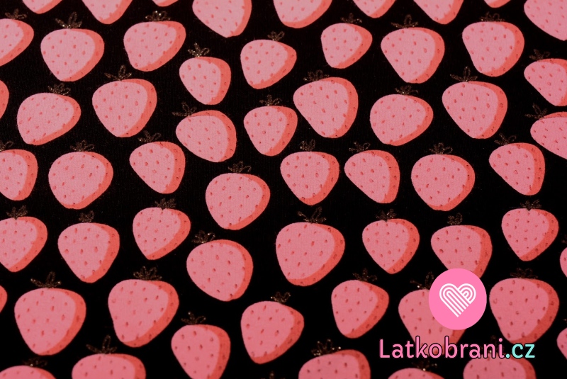 Teplákovina potlač jahôdky sa trblietavou stopkou na čierne