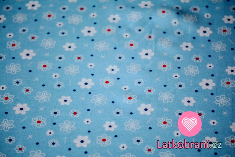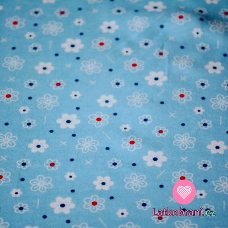 Jednolícní úplet kvietky na nebesky modrej