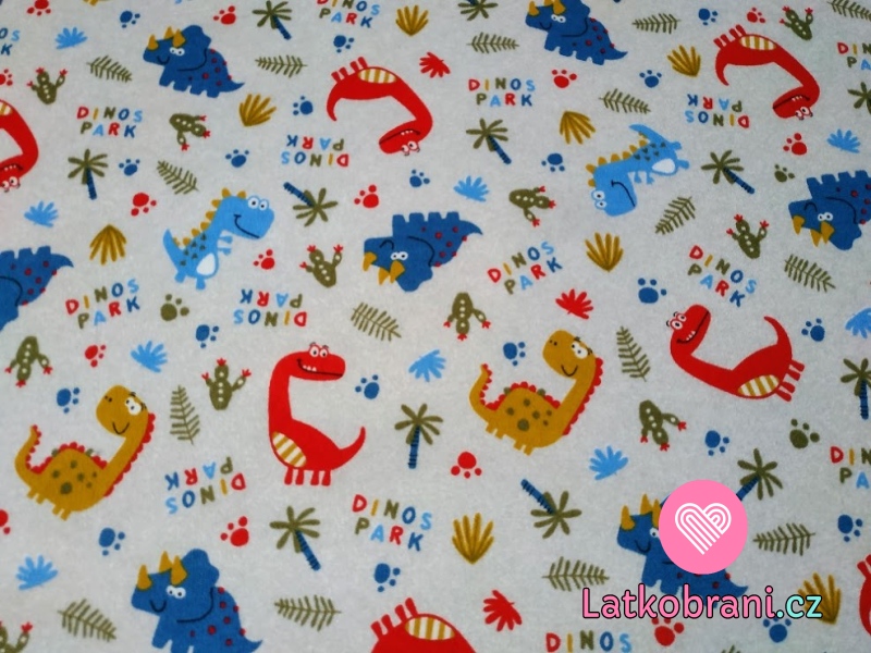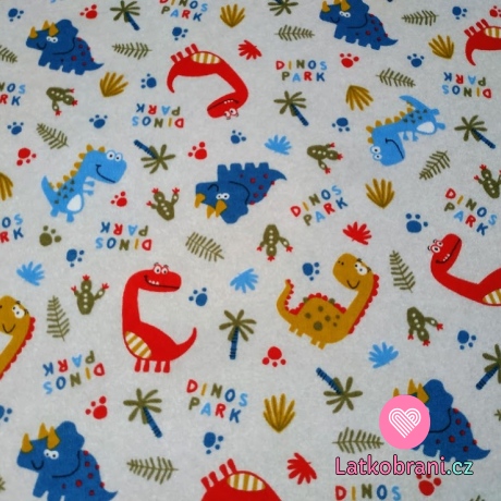 Bavlnený úplet červení dinosaury na šedej