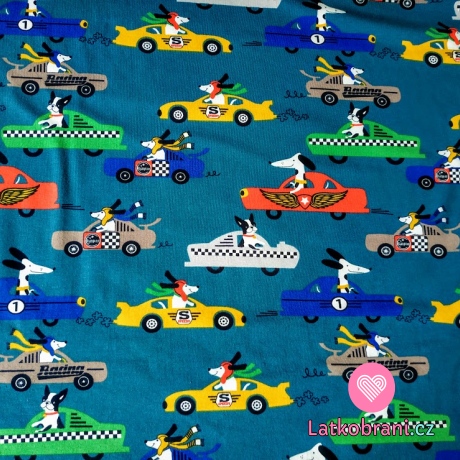 Úplet psíkovia pretekári v autách na petrolejovej modrej