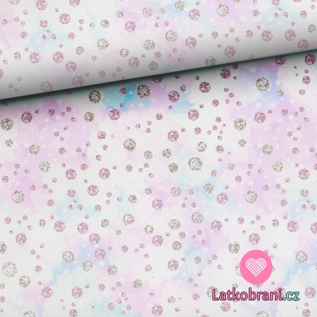 Teplákovina potlač diamanty na ružovo - fialové nočnej oblohe