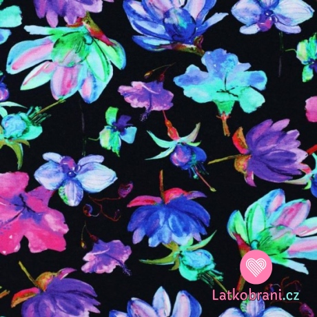 Úplet potlač viskózovej pestré kvety na čierne