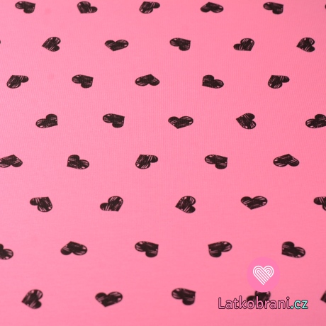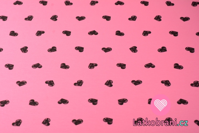 Úplet potlač čierna srdiečka na ružové