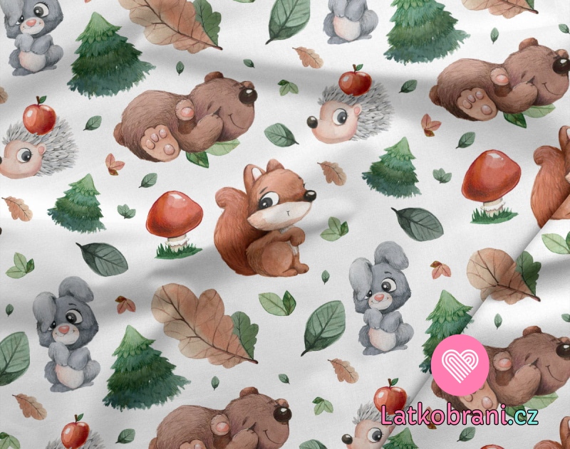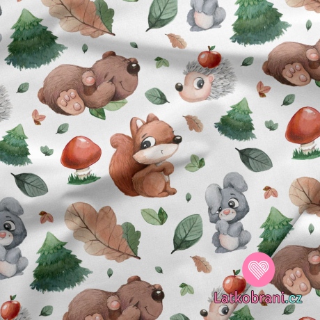 Teplákovina potlač lesné zvieratká sa stromčeky a hubkami