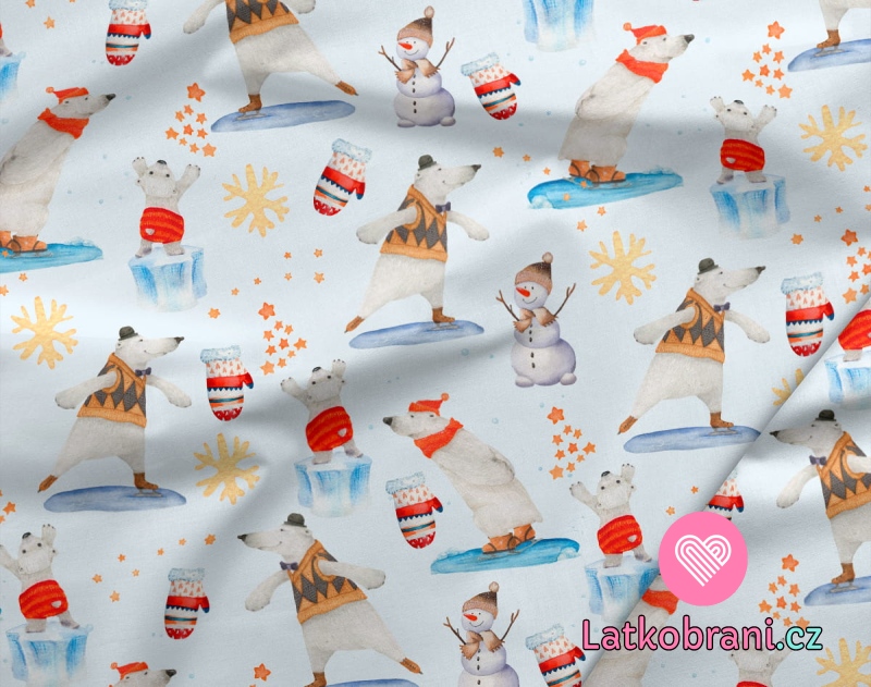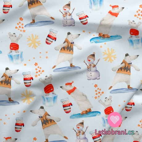 Teplákovina potlač ľadové medvede a snehuliaci na ľadovej kryhe