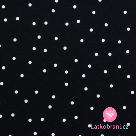 Teplákovina potlač rozhádzaný biely puntík na čiernej