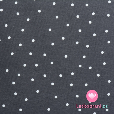 Teplákovina potlač rozhádzaný biely puntík na šedej