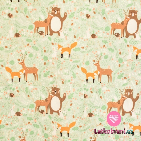 Teplákovina potlač lesné zvieratká sa kamaráti v tráve