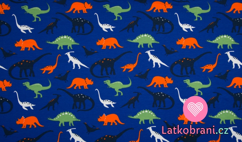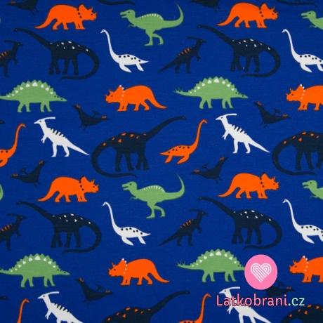 Teplákovina potlač farební dinosaury na kráľovsky modrej