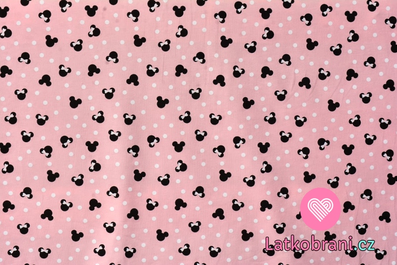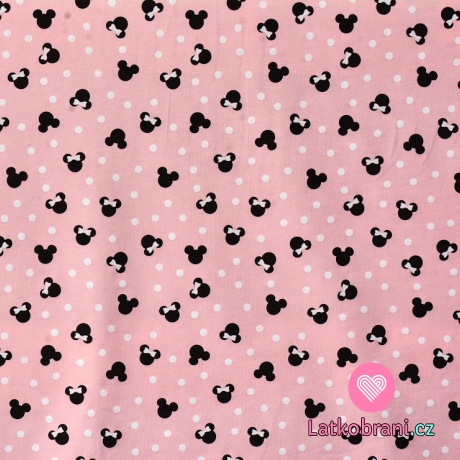Teplákovina potlač hlavička myšky s mašličkou a odrážkou na ružové