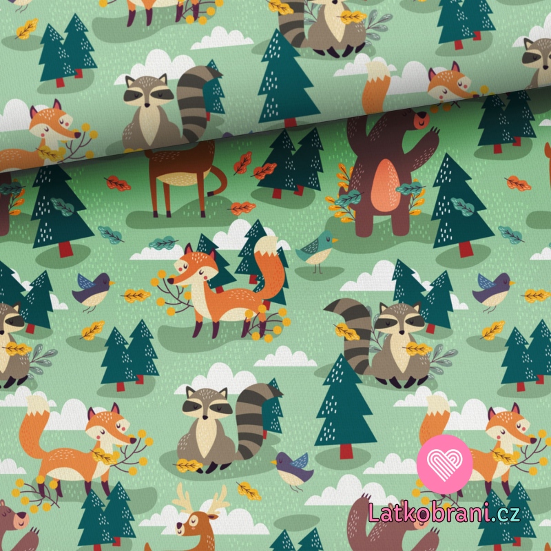 Teplákovina potlač zvieratka medzi padajúcim lístím v lese
