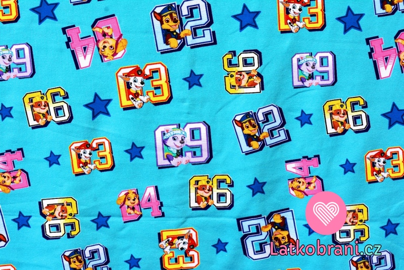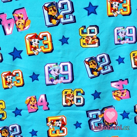 Úplet potlač Tlapková patrola medzi číslami na modrej do tyrkysova